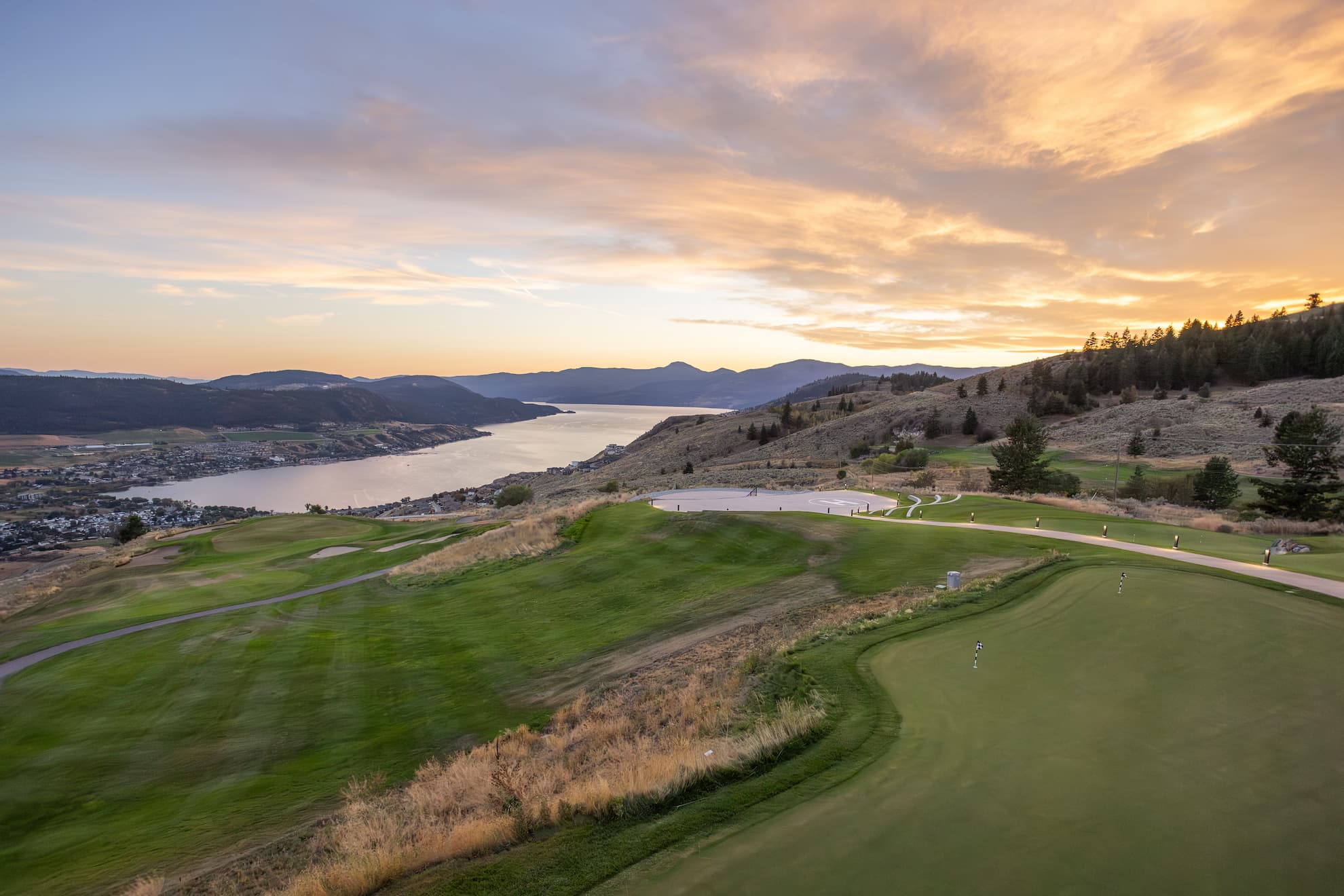 Our Okanagan wedding venue, conveniently located near Kelowna, combines natural beauty with world-class amenities: panoramic 360° views, championship golf course backdrop, The Edge Restaurant’s fine dining, and unique helicopter arrival options. Serving couples from Vernon, Kelowna, and throughout the Okanagan Valley, our location provides the perfect setting for your special day.